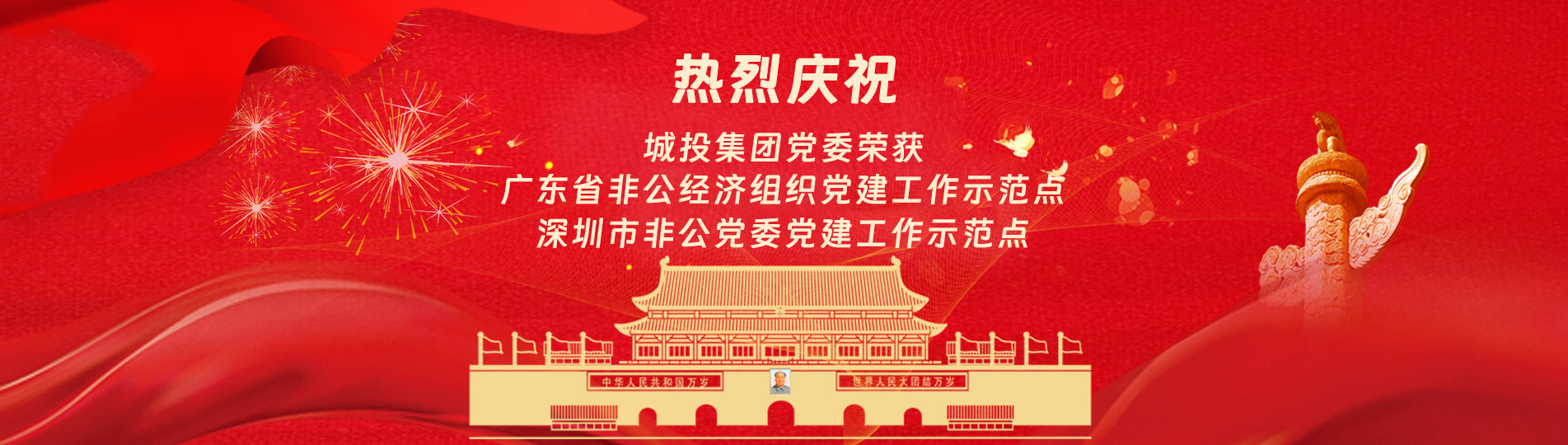 在上級黨委的正確領導下,在城投集團的大力支持下,集團黨委緊緊圍繞企業發展戰略,將黨建引領核心貫穿始終,以五心工程(即思政建設核心工程、經營發展中心工程、企業文化向心工程、黨建品牌匠心工程、服務基層愛心工程)為抓手,大膽探索,勇于突破和創新,不斷形成城投黨建特色,有效輸出城投實踐經驗,充分發揮紅色引擎作用,先后獲得深圳市非公黨委黨建工作示范點、深圳市兩新組織黨建工作示范點深圳市文明單位、深圳市先進基層黨組織、廣東省非公有制經濟領域黨建工作示范點等榮譽稱號。
